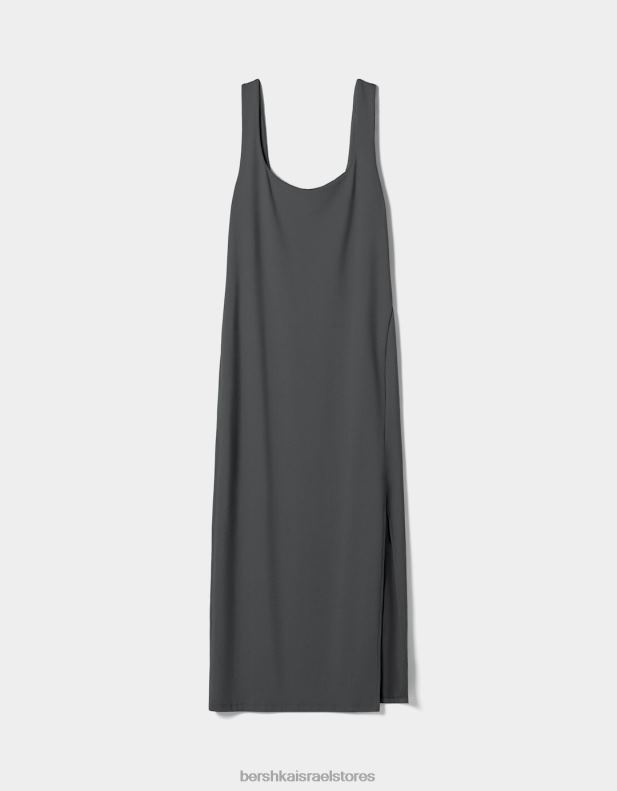 נשים שמלת מידי צמודה עם רצועות אפור כהה 2L6JD259 Bershka הַלבָּשָׁה