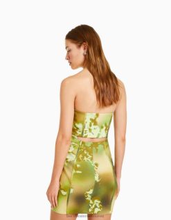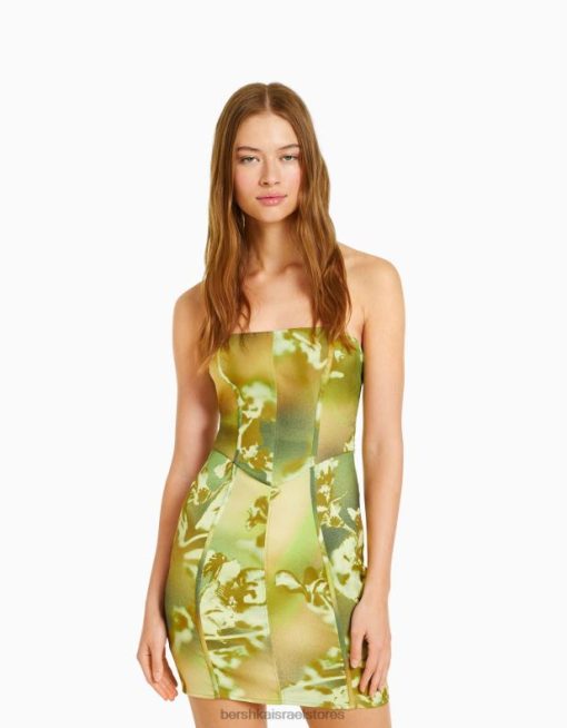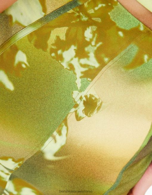 נשים שמלת מיני בנדאו בהדפס בנגלין ירוק 2L6JD122 Bershka הַלבָּשָׁה