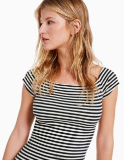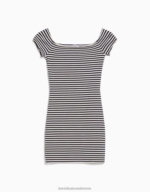 נשים שמלת מיני ברדו במחשוף לבן 2L6JD205 Bershka הַלבָּשָׁה