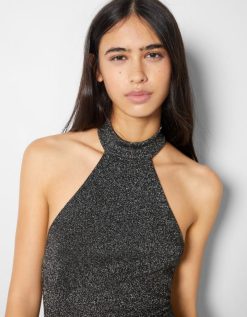 נשים שמלת מיני מבריקה שָׁחוֹר 2L6JD261 Bershka הַלבָּשָׁה