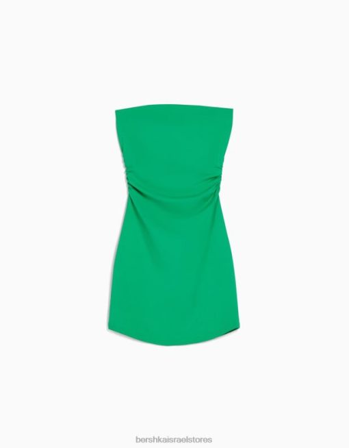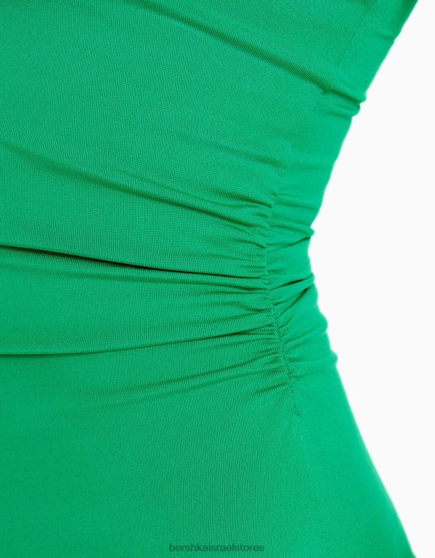 נשים שמלת מיני מחוץ לכתף ירוק 2L6JD1844 Bershka הַלבָּשָׁה