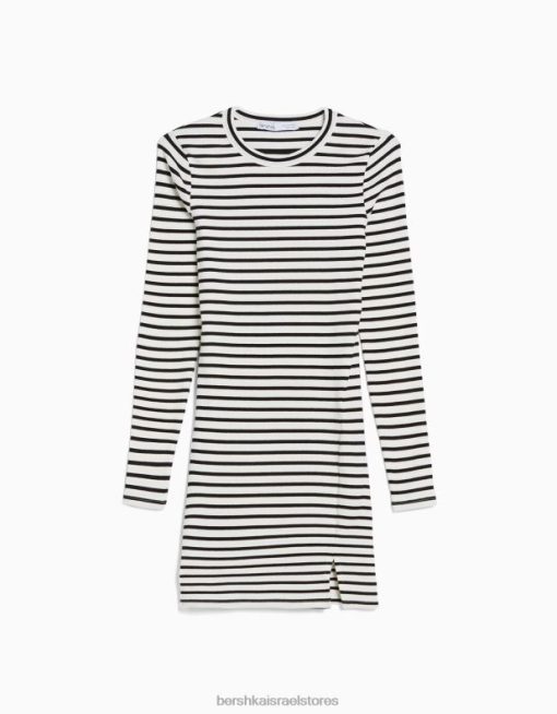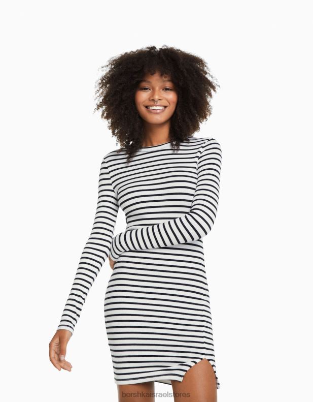 נשים שמלת מיני מצולעת עם שרוול ארוך צבע קרם 2L6JD235 Bershka הַלבָּשָׁה