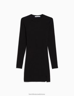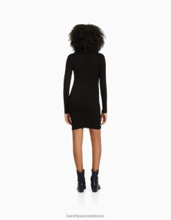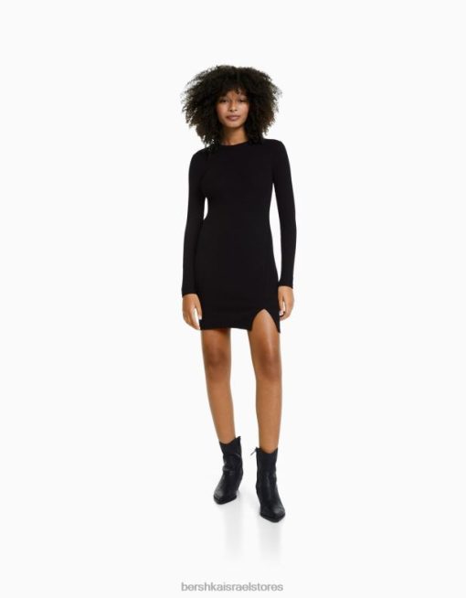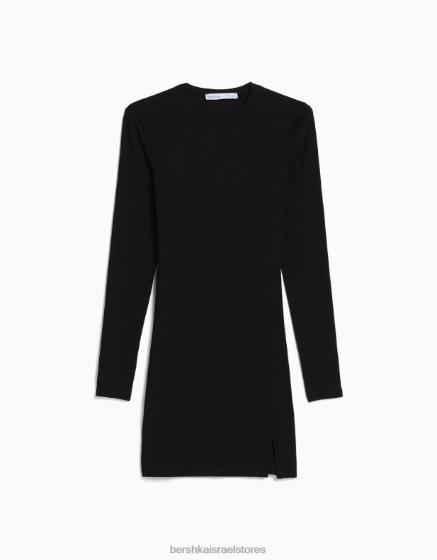 נשים שמלת מיני מצולעת עם שרוול ארוך שָׁחוֹר 2L6JD234 Bershka הַלבָּשָׁה