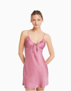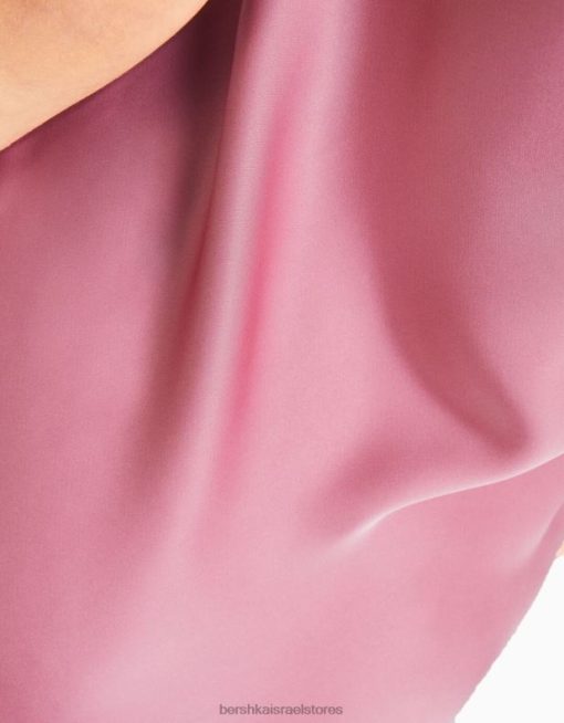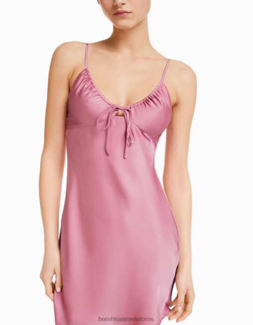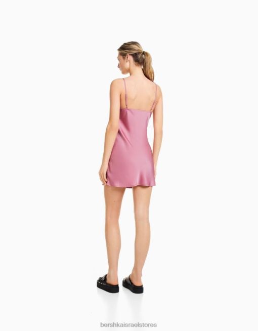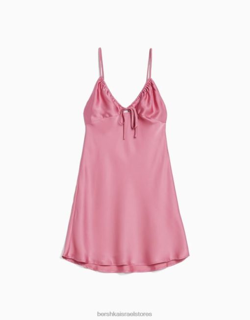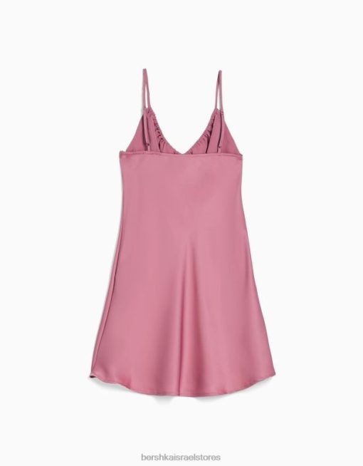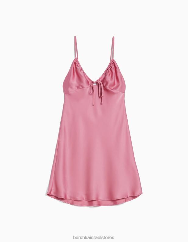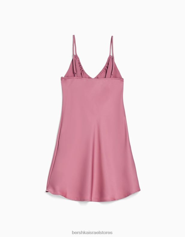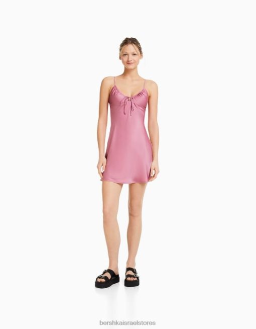 נשים שמלת מיני סאטן נשפכת עם רצועות עם כיווץ וָרוֹד 2L6JD67 Bershka הַלבָּשָׁה