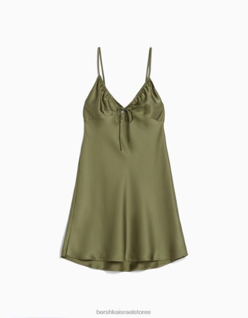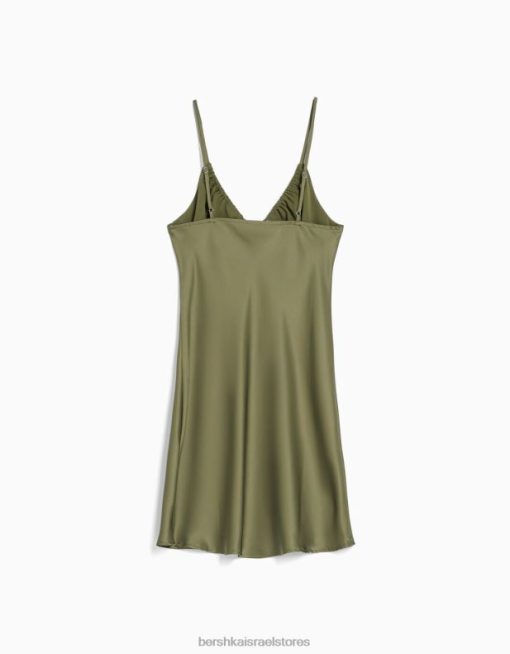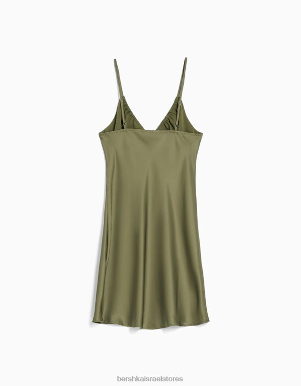 נשים שמלת מיני סאטן נשפכת עם רצועות עם כיווץ חָקִי 2L6JD70 Bershka הַלבָּשָׁה