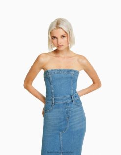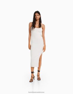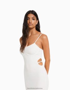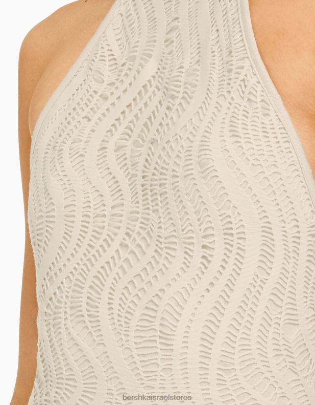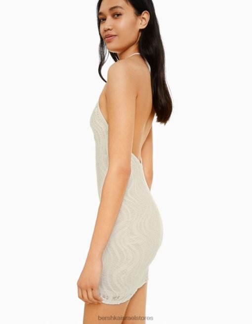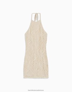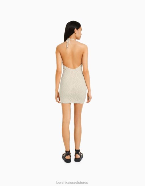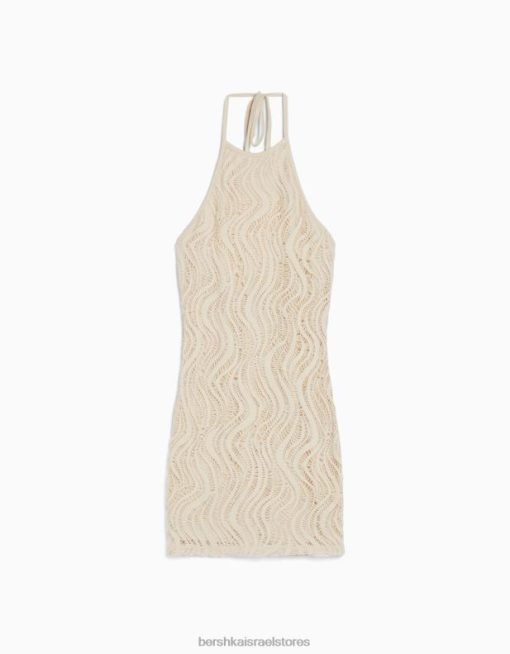 נשים שמלת מיני סרוגה עם צווארון קולר בז’ 2L6JD1931 Bershka הַלבָּשָׁה