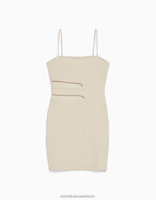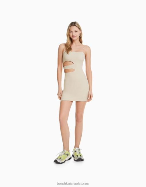 נשים שמלת מיני עם רצועות עם פירוט חתוך גָמָל 2L6JD229 Bershka הַלבָּשָׁה