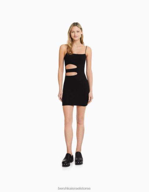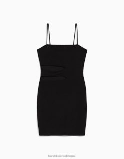 נשים שמלת מיני עם רצועות עם פירוט חתוך שָׁחוֹר 2L6JD228 Bershka הַלבָּשָׁה