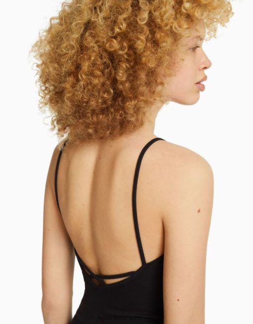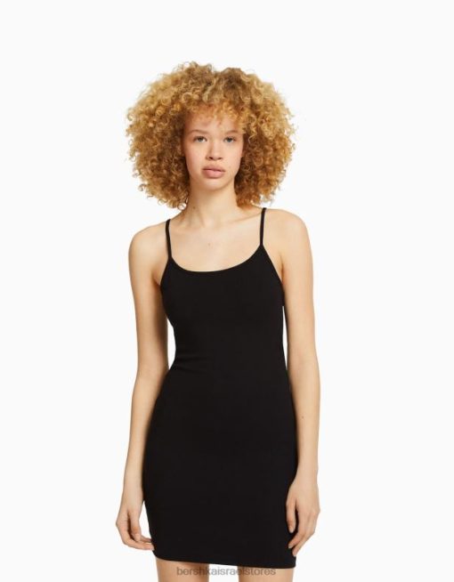 נשים שמלת מיני עם רצועות עם צד אסוף שָׁחוֹר 2L6JD4074 Bershka הַלבָּשָׁה