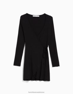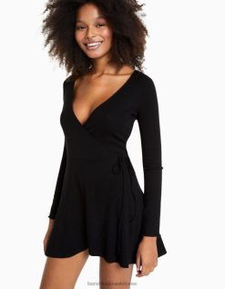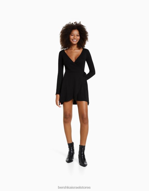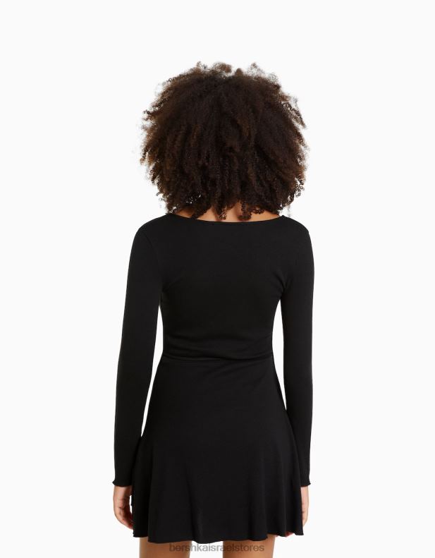 נשים שמלת מיני עם שרוולים ארוכים שָׁחוֹר 2L6JD143 Bershka הַלבָּשָׁה