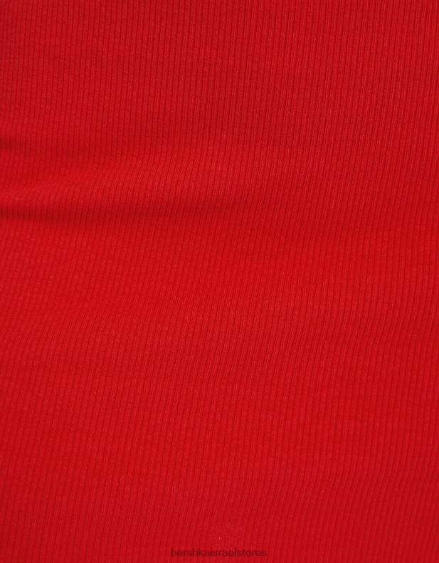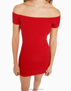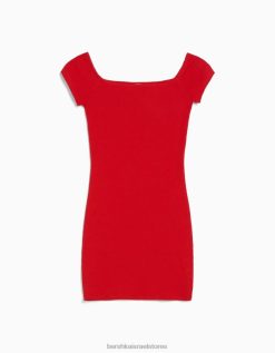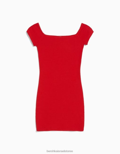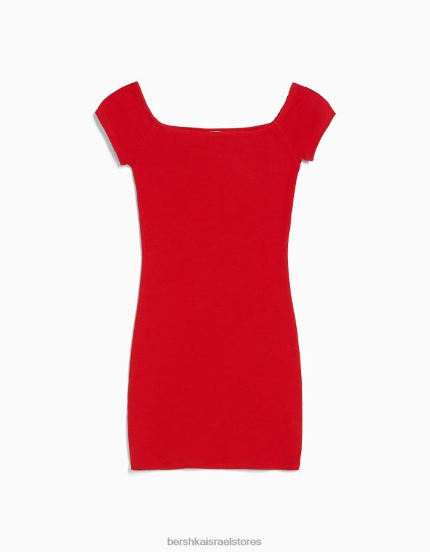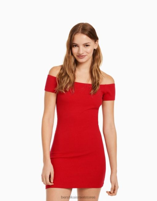 נשים שמלת מיני עם שרוול קצר מחוץ לכתף אָדוֹם 2L6JD4068 Bershka הַלבָּשָׁה