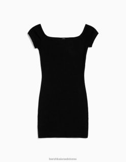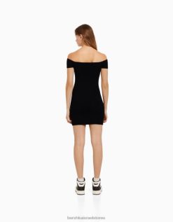 נשים שמלת מיני עם שרוול קצר מחוץ לכתף שָׁחוֹר 2L6JD4070 Bershka הַלבָּשָׁה