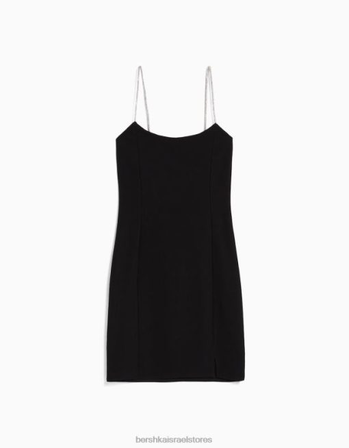 נשים שמלת מיני רצועות ריינסטון עם שרוך בצלעות שָׁחוֹר 2L6JD133 Bershka הַלבָּשָׁה