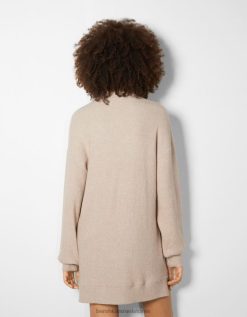 נשים שמלת שינוי שרוולים ארוכים חוֹל 2L6JD286 Bershka הַלבָּשָׁה