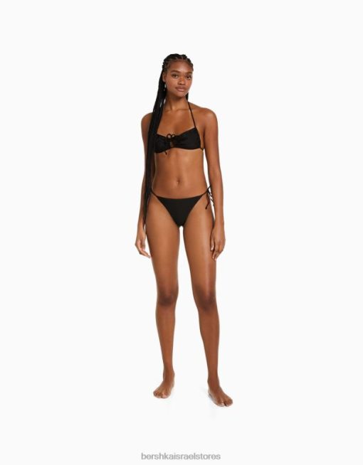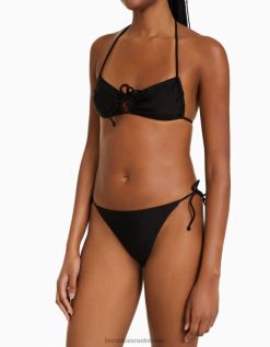 נשים תחתוני ביקיני נוצצים עם רצועות צד שָׁחוֹר 2L6JD1781 Bershka הַלבָּשָׁה