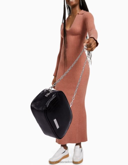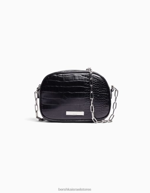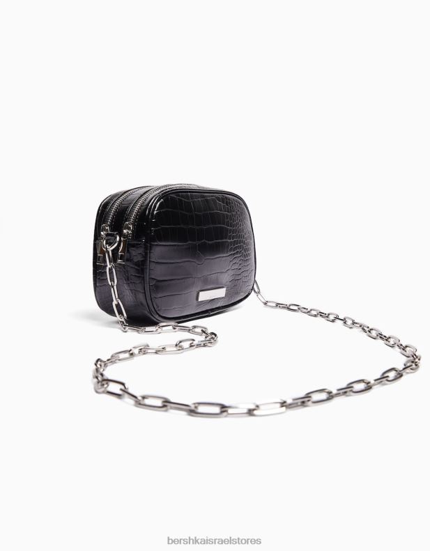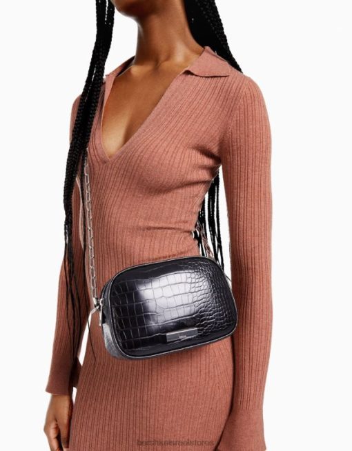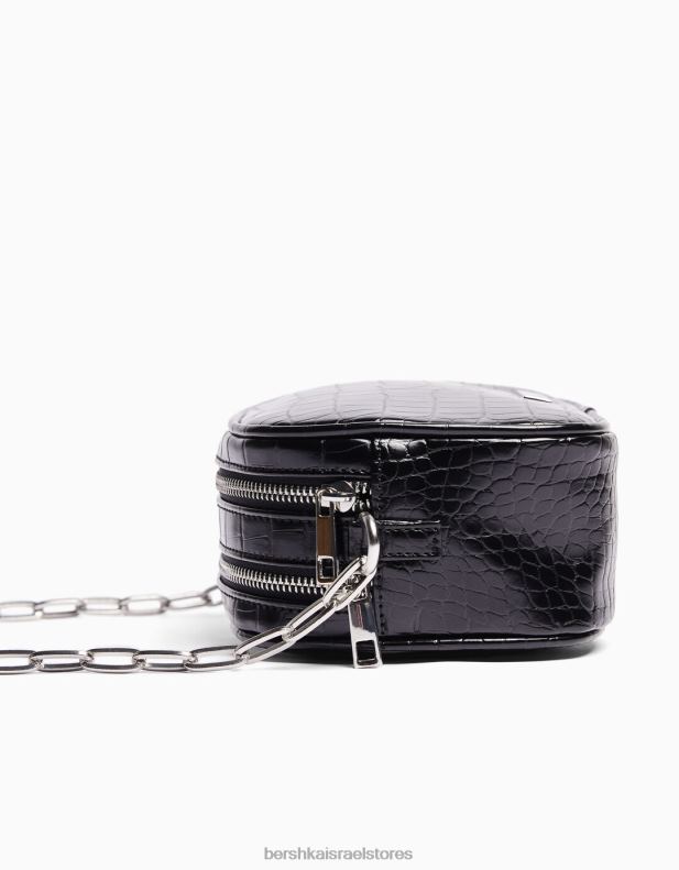 נשים תיק בעל מרקם עם רצועה ורוכסן כפול שָׁחוֹר 2L6JD2400 Bershka אביזרים