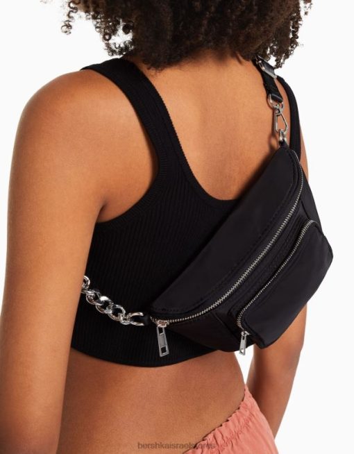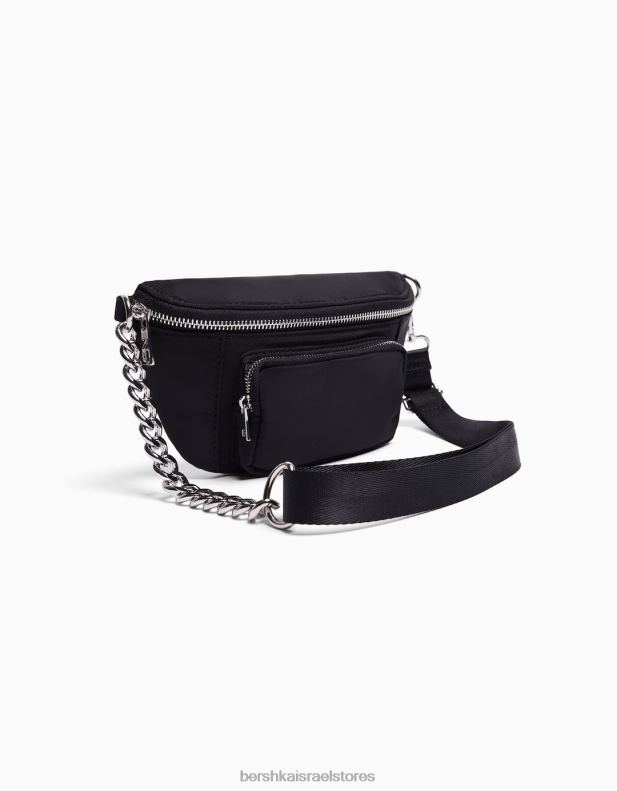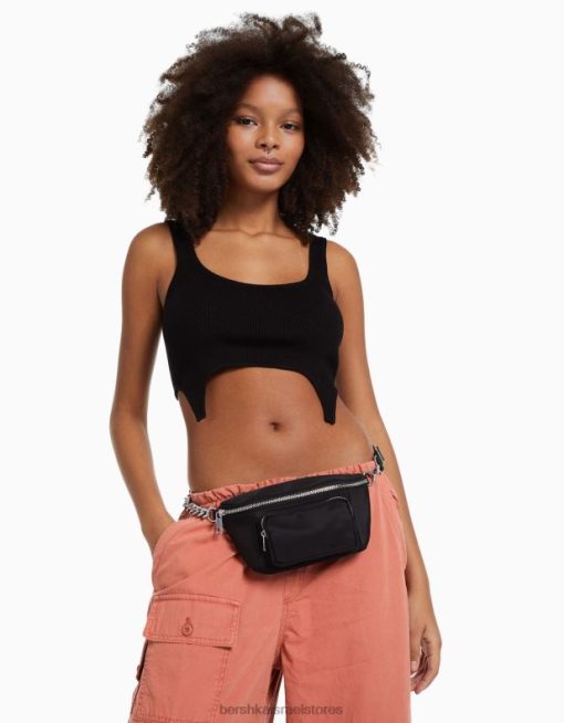נשים תיק חגורת בד עם רוכסנים שָׁחוֹר 2L6JD2395 Bershka אביזרים