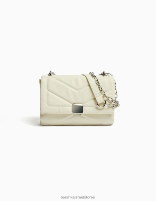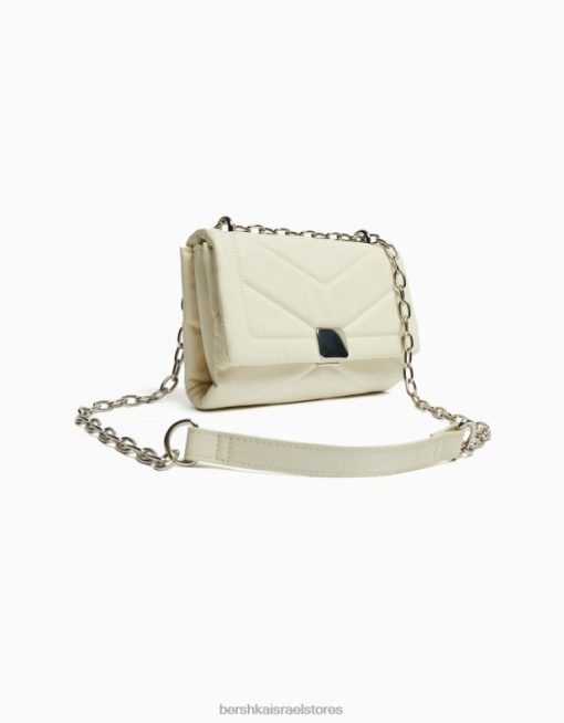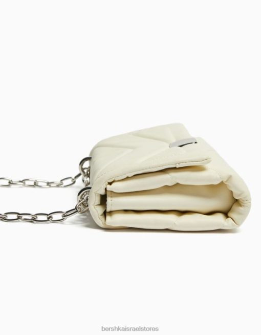 נשים תיק כתף מיני מרופד עם שרשרת לבן 2L6JD2352 Bershka אביזרים