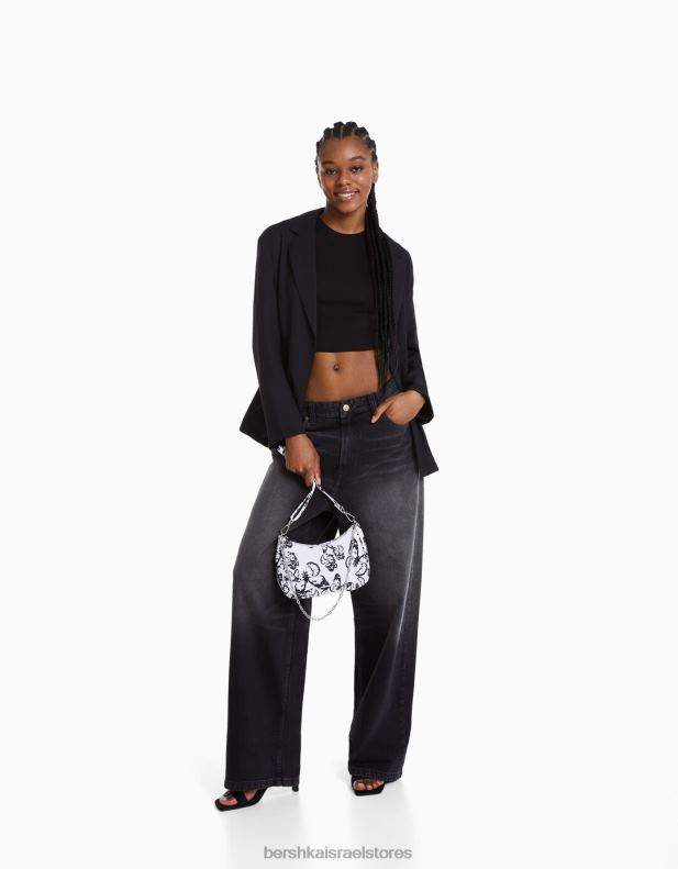 נשים תיק מוצלב מודפס לבן 2L6JD2356 Bershka אביזרים