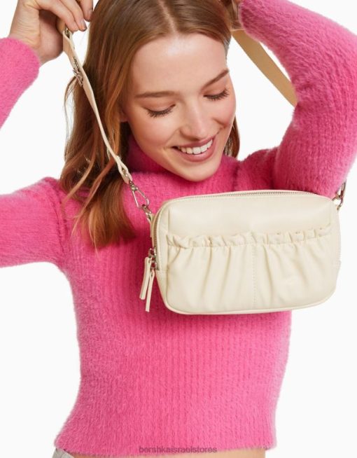 נשים תיק קרוסבודי מעור מלאכותי עם פרטי פרפר קרם 2L6JD2405 Bershka אביזרים