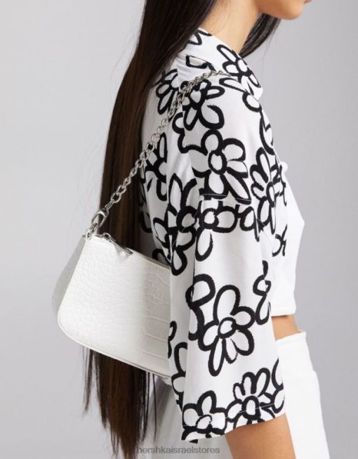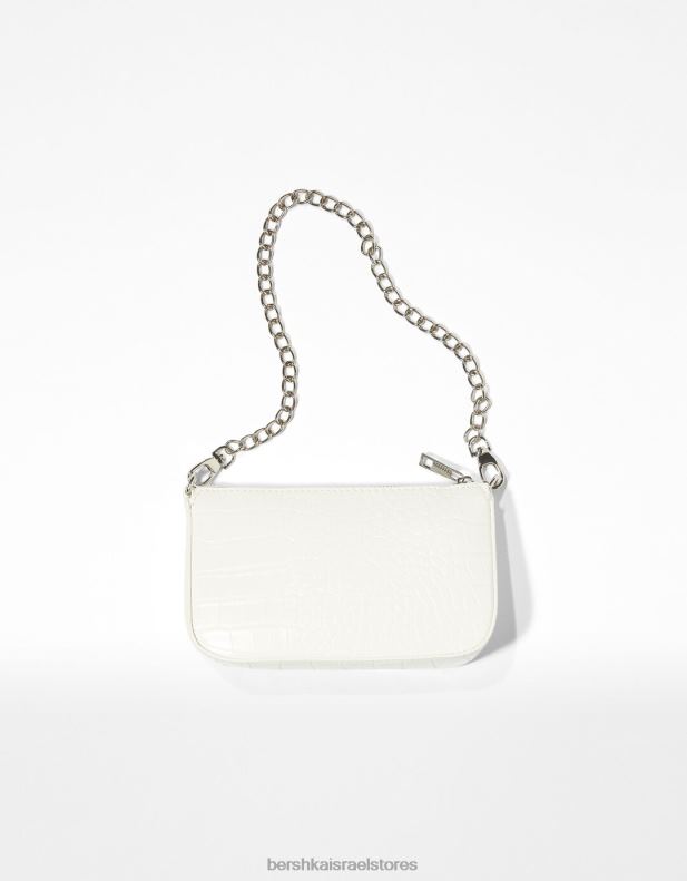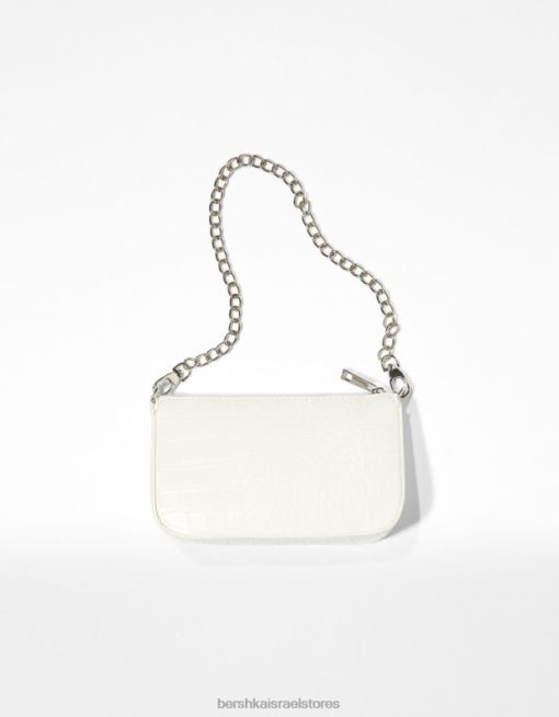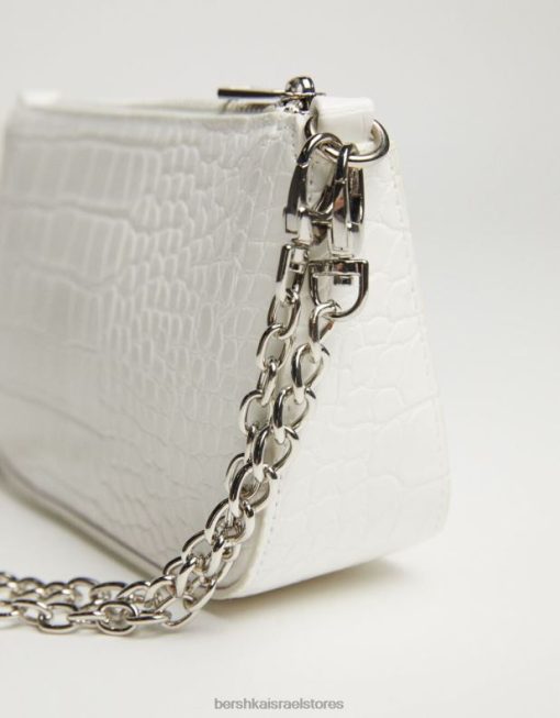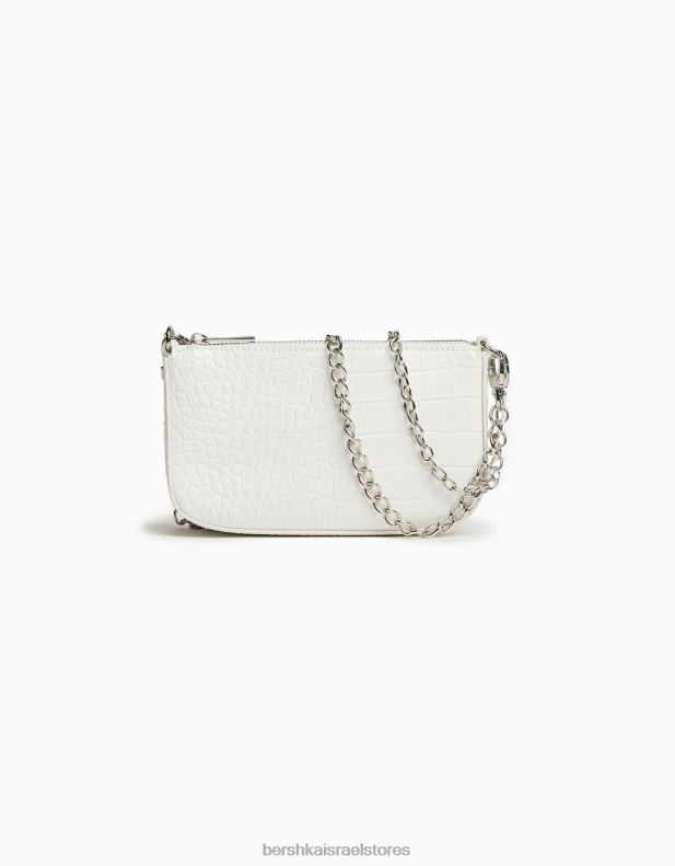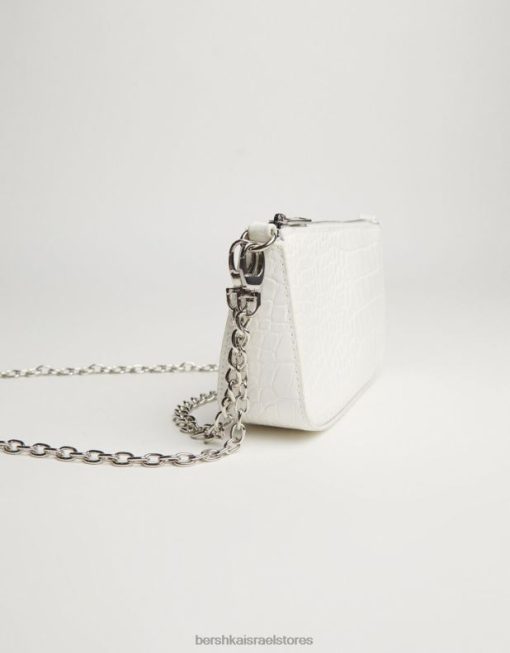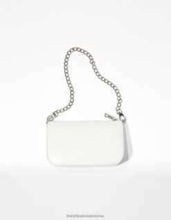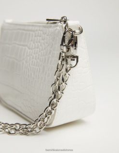 נשים תיק קרוק מדומה עם פירוט שרשרת לבן 2L6JD2411 Bershka אביזרים