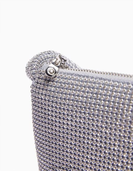 נשים תיק ריינסטון עם ידית כסף 2L6JD1868 Bershka אביזרים