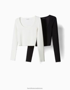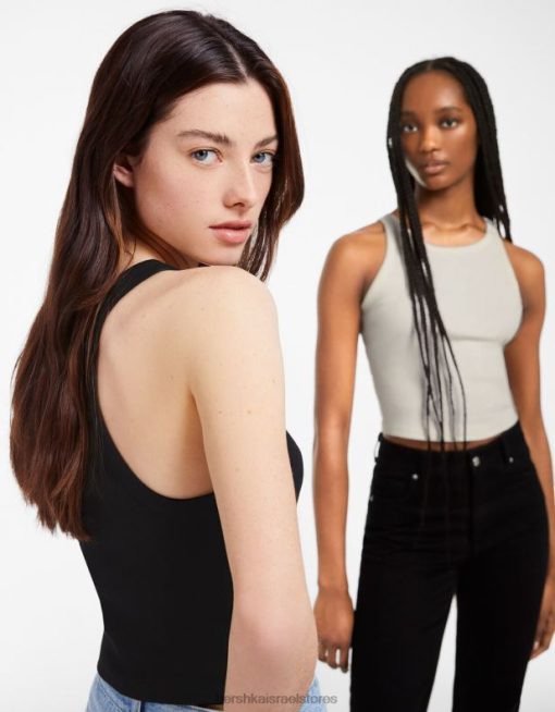 נשים 2 חבילה של עליוניות מצולעות ללא שרוולים צִבעוֹנִי 2L6JD307 Bershka הַלבָּשָׁה